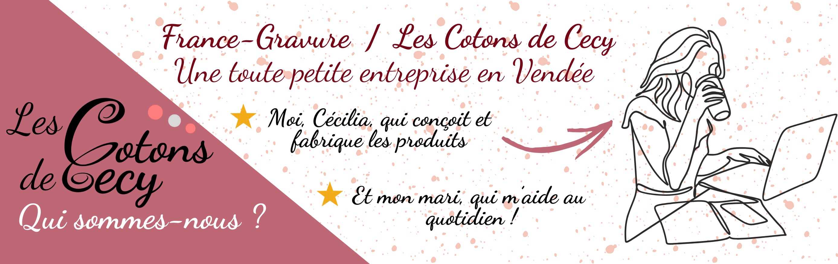 Le savoir-faire de Les Cotons de Cecy, désormais sur France-Gravure ------ ⭐️⭐️⭐️⭐️⭐️ Plus de 1000 avis 5 étoiles sur Etsy ⭐️⭐️⭐️⭐️⭐️ ------- Des produits de qualité gravés en France.